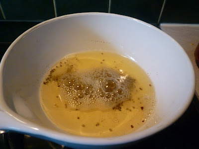 7. In a second saucepan, heat the oil and add the mustard seeds to it. Once the mustard seeds start popping, spread the oil on top of the stuffed peppers.